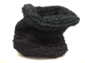 Hand knitted out of paper yarn, felted wool & silver. 650 SEK. Interested? Please send me an email kri.wiberg@gmail.com.