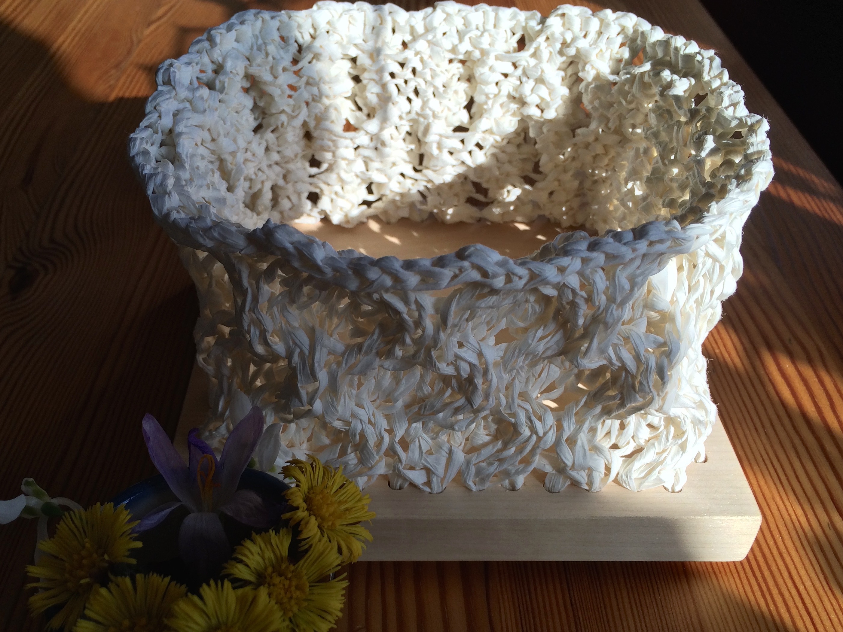 Fortsätta experimentera Jag vill sticka materialprov i honungskaketeknik i ytterligare tre pappersgarner. Kan ev. hinna göra eget grövre pappersgarn i samma grovlek som Fantti eller ev. av klippta tygremsor/återbruk av något slag.